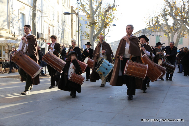 Une journée à deux visages débute tôt le matin au domaine de Sulauze. L’ambiance est très religieuse avec la messe en provençal suivie de la procession à la chapeele de Ste Magdalène des Champs. Tout s’y termine avec un vin chaud du domaine et le traditionnel gibassier de Mr Rastuen. Elle reprend flamboyante à 14H00 avec le grand défilé en ville. On y retrouve le trelus, bien évidemment, le groupe d’Istres. Il est accompagné par la Capoulièro, li dansaire du Grand Cavaou, li camin de Prouvènço, l’académie Provençale de Mandelieu la Napoule, la respelido prouvençalo... Des fifres et tambours, des gardians, les attelages du Pays d’Arles, les vannniers de Vallabrègues, une Carreto Ramado en l’honneur de Saint Eloi, fêtant ainsi la St Eloi d’Hiver et j’en oublie... Tous précèdent, accompagnent et sont venus voir les bédigues.