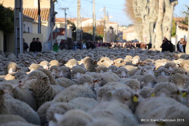 Le défilé est millimétré... A peine lou Trelus termine t’il son parcours qu’on entend le redon du floucas qui tintinnabule. Les moutons arrivent. Trois mille moutons, des chèvres du Rove et des ânes constituent ce troupeau splendide qui touche au coeur les petits comme les grands.