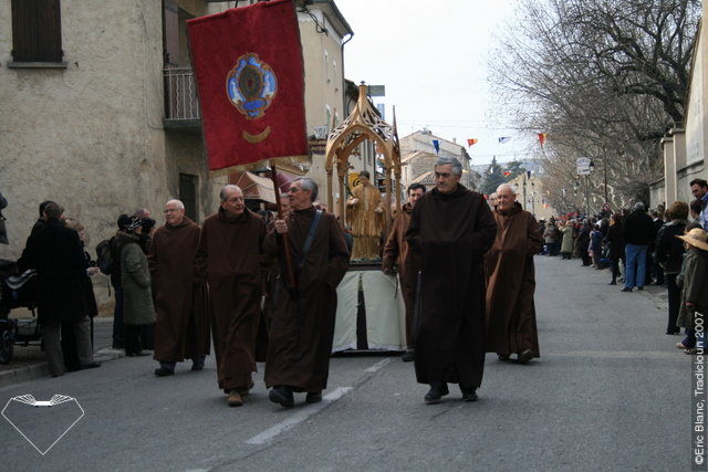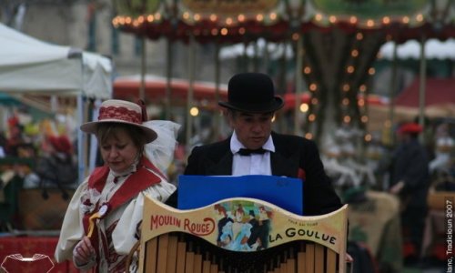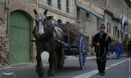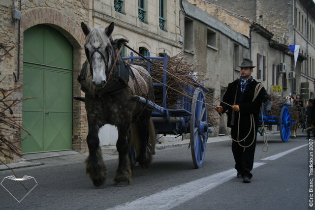 Alors chaque année, le village retrouve son ambiance XIXème siècle. La place est envahie par un marché... Les artisans sont des fabricants de balais, fileuses, dentelières, arracheurs de dents, ébéniste, étameur, forgeron, sculpteur, bouilleur de cru, torrefacteur... Tant et plus. Nous sommes pour 3 jours de fête replongés en 1868, avec une ambiance toute particulière. Ici, deux zouaves du 3ème régiment de zouave, basé à Philippeville discutent. Là bas, une machine à vapeur traverse le village... Tout autour la musique des orgues de Barbarie parachève le tableau. Comme en support de la "festo de poutoun", c’est aussi aujourd’hui le festival des manivelles de l’amour. Quarante instruments sont disséminés ici ou là. Et les manifestations se succèdent. Les lupercales, puis la procession des reliques du Saint, suivie par le défilé des "sept charettes de sarments" rappelant que février est aussi le temps de la taille de la vigne. Même les gamins ne sont pas en reste, souvent oubliés de ces journées, ils sont à la fête ici, Festijeu a pensé à eux, leur mettant à disposition nombre de jouets en bois qui font leur bonheur.