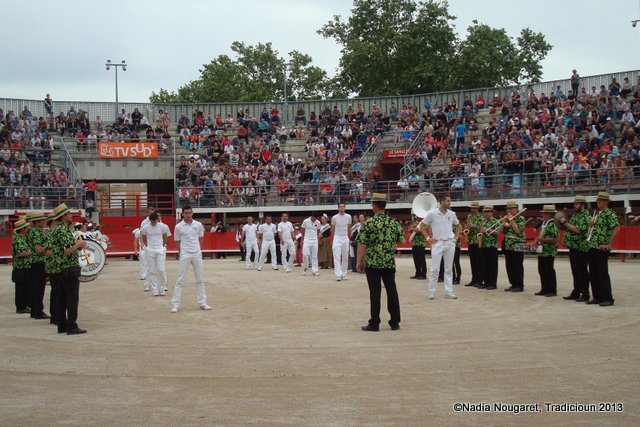 A 16h, c’est la queue devant les guichets des arènes, rarement les arènes de Vauvert ont connu une telle affluence. Il faut dire que les taureaux sont de 1ère catégorie. Mais avant que la course camarguaise ne débute, les jeunes de l’école taurine se mesurent à deux taureaux emboulés. Au moment de la capelado, un hommage est rendu aux aficionados disparus en général et à Joseph Boudoux en particulier. En ce qui concerne la course, d’autres en parleront mieux que moi mais il a plu et presque tout le monde est resté !