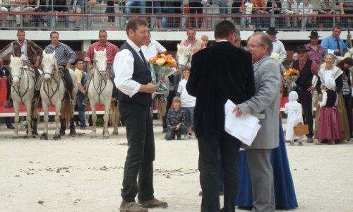 Le père Benjamin Provost succède à des présidents prestigieux comme René Girard et Guy Chaptal. Le programme a peu changé en 28 ans mais il fait de cette journée, une belle journée de fête, d’aficion et de tradition. Les manades viennent se présenter au jury, font évaluer leur harnachement et leur tenue. Les calèches et les arlésiennes défilent le long du parcours. Vient ensuite pour les gardians le moment de montrer leur habileté sur un parcours plutôt difficile, ponctué de virages ardus. Cette année, c’est la manade Vidal qui a gagné et leur joie faisait plaisir à voir. Tout comme celle des gagnants du concours de bâches. Les “moyens” de l’école maternelle de Montcalm ont rapporté un beau chèque à leur école.