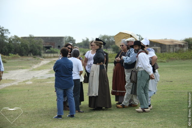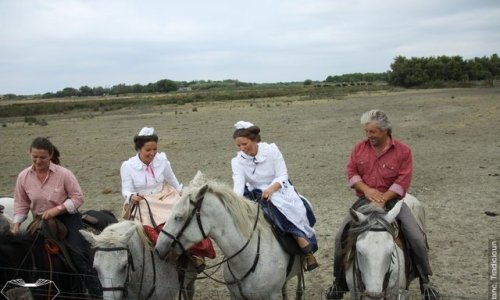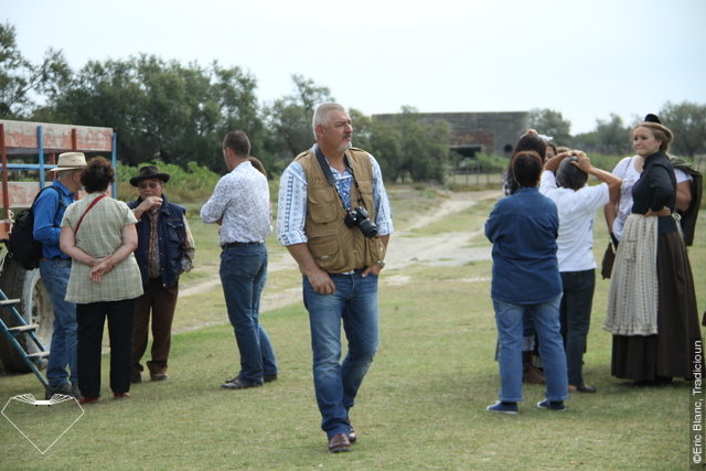 De son coté le groupe arrive à la manade pour y découvrir la plus belle des surprises de la journée. La présidente de Tradicioun tenait à faire de cette journée un temps de partage de passion. L’association est venue ici pour communier avec les manadiers autour de l’héritier du ’Dieu Mithra’ et partager l’amour du costume traditionnel. Ainsi Magali, Marie-Ange, Nais, Annie, Camille, Cathy, Isabelle, Eric et David porte ’lou vesti d’antan’.