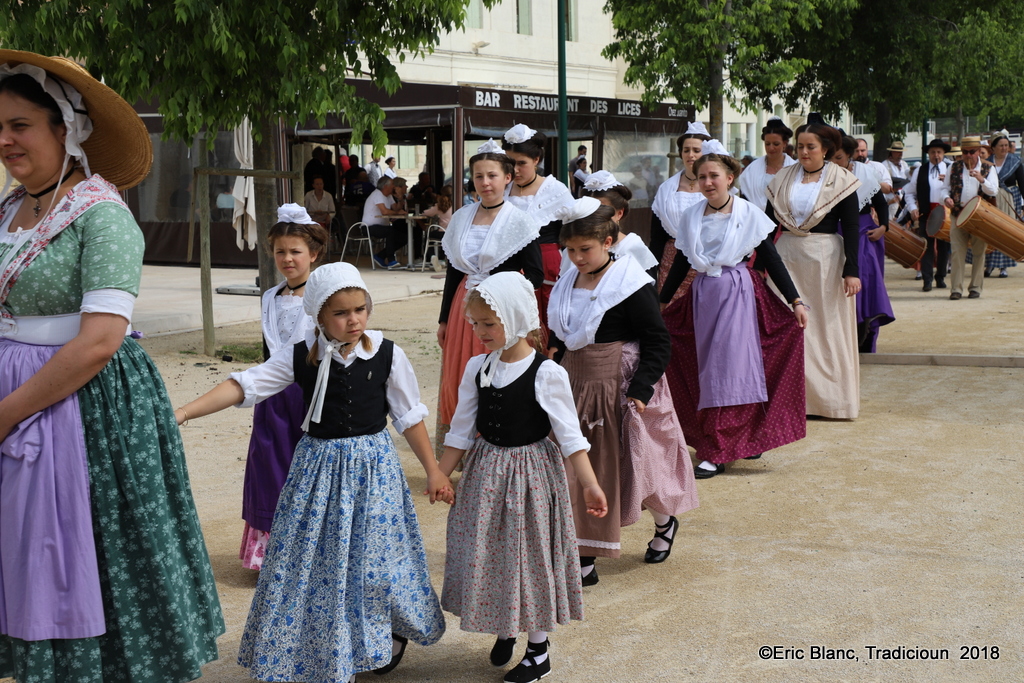 La Maio de Fourques est la seule vraie fête dédiée à l’enfance. Si ailleurs, on les "trimballe" avec nous adultes, ils sont ici les vrais vedettes de cette célébration. Les groupes retenus pour animer la journée ont tous des sections enfantines actives. Tous ont tellement leur rôle à coeur qu’il est difficile d’obtenir une photo d’une adulte qui ne soit pas en train de regarder tendrement un drole ou une chatouno...