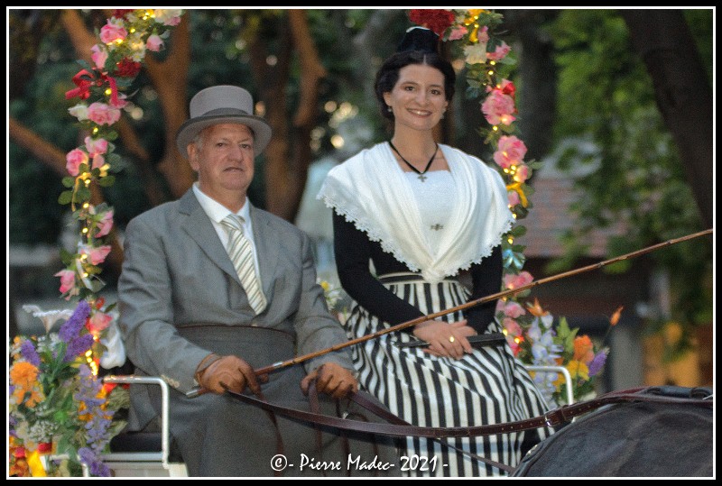 On se sent à notre place, on sait pourquoi on se retrouve là. Et puis le vendredi soir les groupes se retrouvent pour la pégoulado, on revoit les personnes, on ne s’est plus regroupé ainsi depuis 1 an et demi. Avec joie et enthousiasme chacun reprend sa place, retrouve les gestes. On se prépare pour le défilé. Tout le monde prend vraiment plaisir à relancer, à remettre en route le mouvement de la Tradition. Le public est présent lui aussi, et apprécie de voir et de recevoir cette ambiance simple et chaleureuse d’un peuple heureux de se retrouver. Ce dimanche est particulier, nous avons tous et toutes pour la grande majorité vécu un certain nombre de fêtes du costume. Mais celle-ci à une saveur particulière car c’est une année d’élection et de passation de fonction entre le 23ème règne envers le 24ème. Le 23ème règne a du poursuivre une année de plus, et le futur 24ème a dû patienter, le temps que l’on puisse surmonter cette pandémie qui nous a coupé l’élan et mis à l’arrêt durant plus d’une année. Nais et ses demoiselles d’Honneur peuvent ainsi aujourd’hui remettre le flambeau de la tradition au 24ème règne. Pour ce passage, les éléments ont décidé de nous faire un rappel pour nous dire de faire attention et de ne pas repartir trop vite, pour prendre le temps d’apprécier vraiment ce que nous vivons. La pluie est venue imposer un coup de frein à cette journée. Alors sur le coup, frustration, doute, peur de ne pas pouvoir faire la journée ont laissé la place à la joie, l’émotion, au plaisir d’assister enfin à cette magnifique passation. Nos Reines Nais Lesbros et Camille Hoteman nous ont gratifié de deux très grands discours. Nous avons la chance de pouvoir compter sur des jeunes femmes ayant conscience de l’importance de leurs fonctions au sein de notre communauté, des valeurs de transmissions, de conserver et de faire évoluer sans dénaturer aucunement cette force vive qui anime "nos traditions". Leurs demoiselles d’honneur ont elles aussi pleinement ce rôle à jouer car il ne peut y avoir une reine sans demoiselles d’Honneur. Elles sont les tuteurs de le Reine qui sait qu’elle peut ainsi se reposer sur elles. Ensemble elles développent une synergie qui permet de faire avancer nos coutumes. Nais Lesbros, Lucie Barzizza, Laura Bernabé, Amandine Sabatier merci pour tout ce que vous nous avez donné pendant ces 4 années, merci aussi à vos familles :père, mère, soeur, frères... qui ont œuvré dans l’ombre et sans qui le résultat ne serait pas aussi accompli. N’oublions pas les petits amis qui doivent patienter, ne pas se montrer, mais toujours encourager, soutenir et vivre au rythme des sorties de leur chérie. A vous jeunes hommes que l’on oublie souvent on doit aussi reconnaissance et remerciements. Camille Hoteman, Amandine Valérian, Pauline Valette, Clémence Fabre, Manon Alexandre, Marie Cholvy à vous maintenant de remplir les pages qui vont s’ouvrir au fur et à mesure que votre règne va évoluer. N’oubliez pas de ralentir, de prendre le temps d’apprécier, de vous apprécier, de trouver dans les moments les plus simples, les plus grandes joies d’être le 24ème règne.